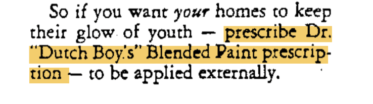 The document we are highlighting today is another example of this strategy. In this case, Dutch Boy is labeled as a doctor prescribing lead paint for one's house.